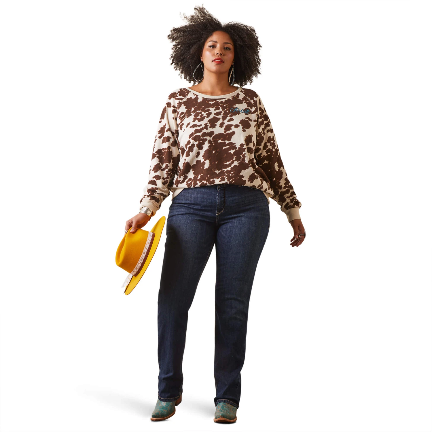 This Ariat Women’s Real Hide Crew Sweatshirt offers lightweight comfort with a cowhide print, ribbed cuffs, hem, and neckband, and an embroidered chest logo. Crafted with a classic silhouette, this sweatshirt is an ideal choice for year-round layering. With Ariat’s signature quality, you can trust this sweatshirt will offer lasting style and comfort.