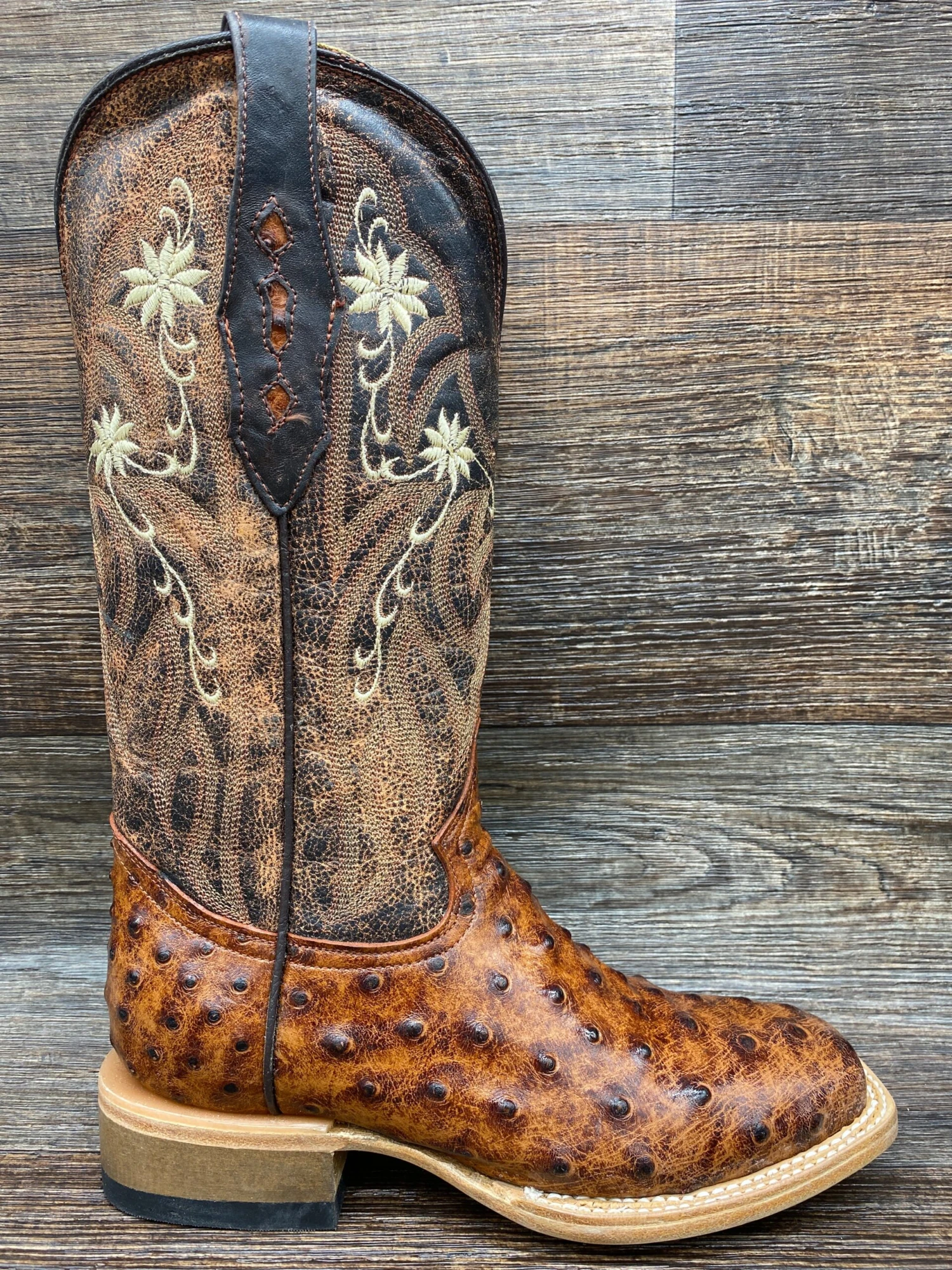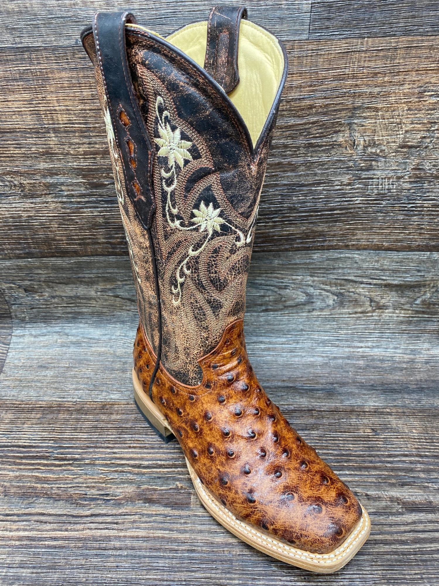 Cognac Faux Ostrich Vamp with 12 inch Western Stitched shaft