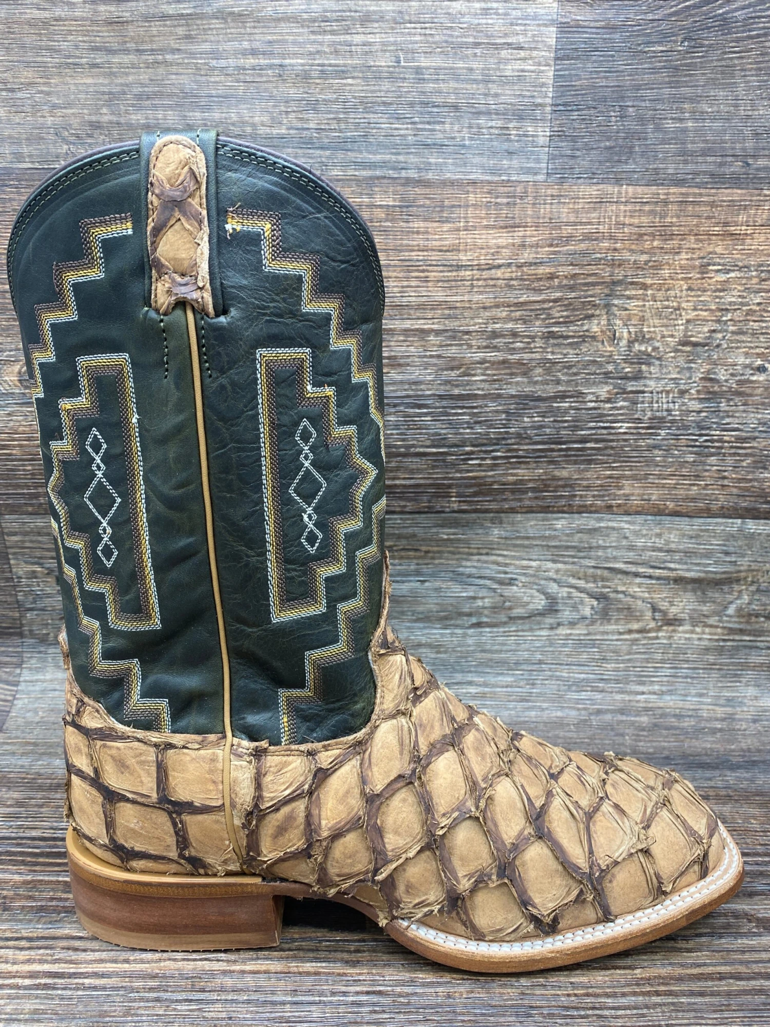 Coordinating Southwestern inspired stitching elevates this dynamic look. The Cushion Comfort Package insole provides supportive comfort for your feet. This boot is designed with a broad square toe and a butyl leather sole, complemented by a 1 3/8″ walking heel with spur ledge.
