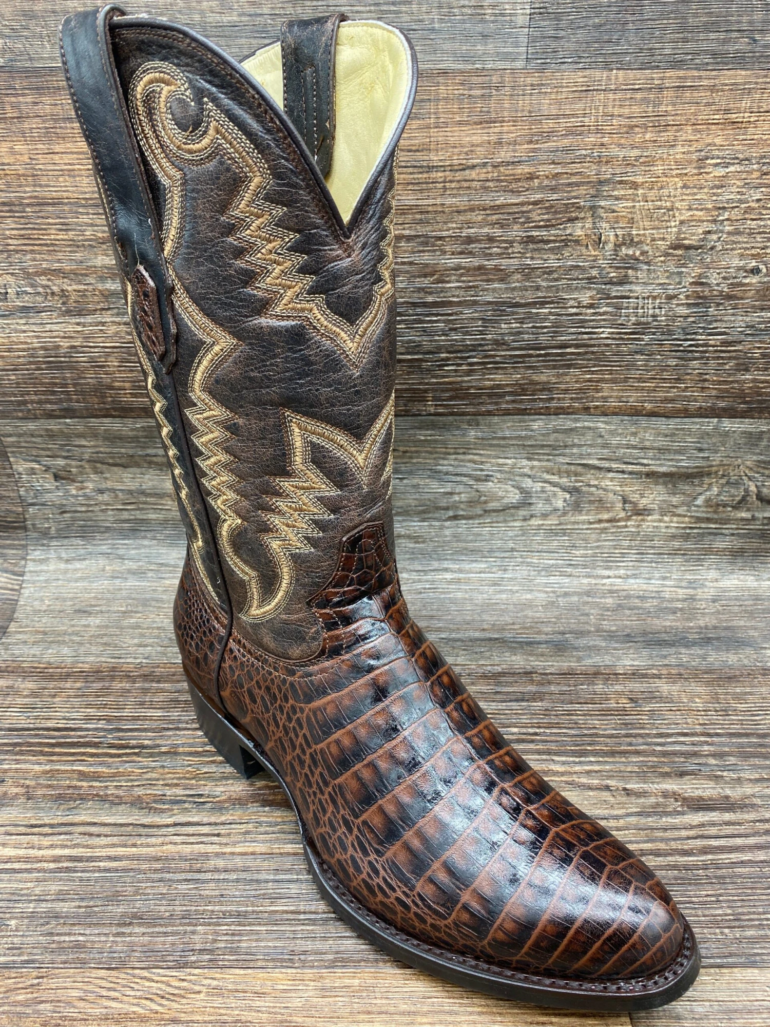 Coffee Faux Alligator Vamp with 13 inch Western Stitched shaft