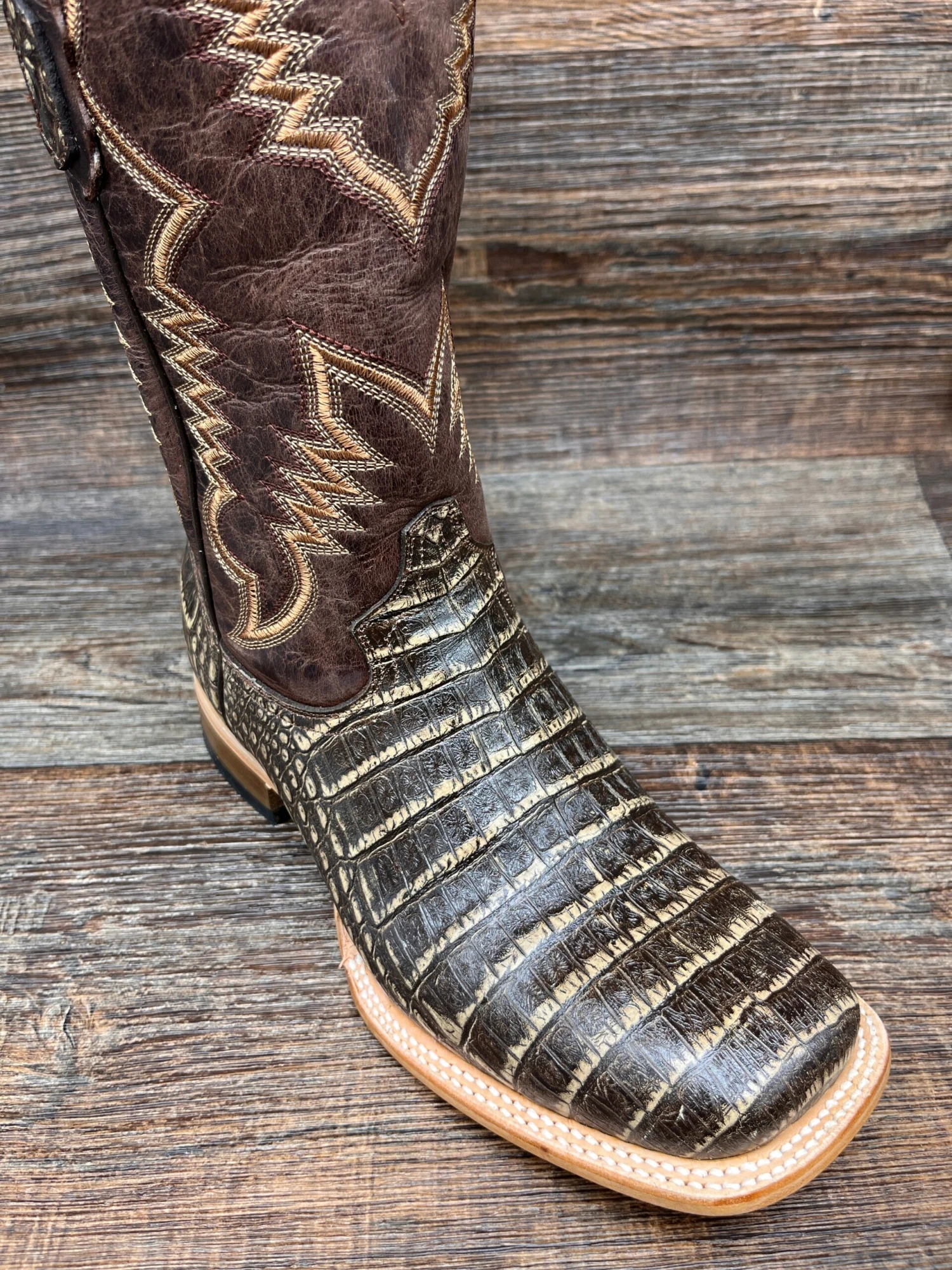 Brown/Tan Faux Alligator Vamp with 12 inch Western Stitched shaft