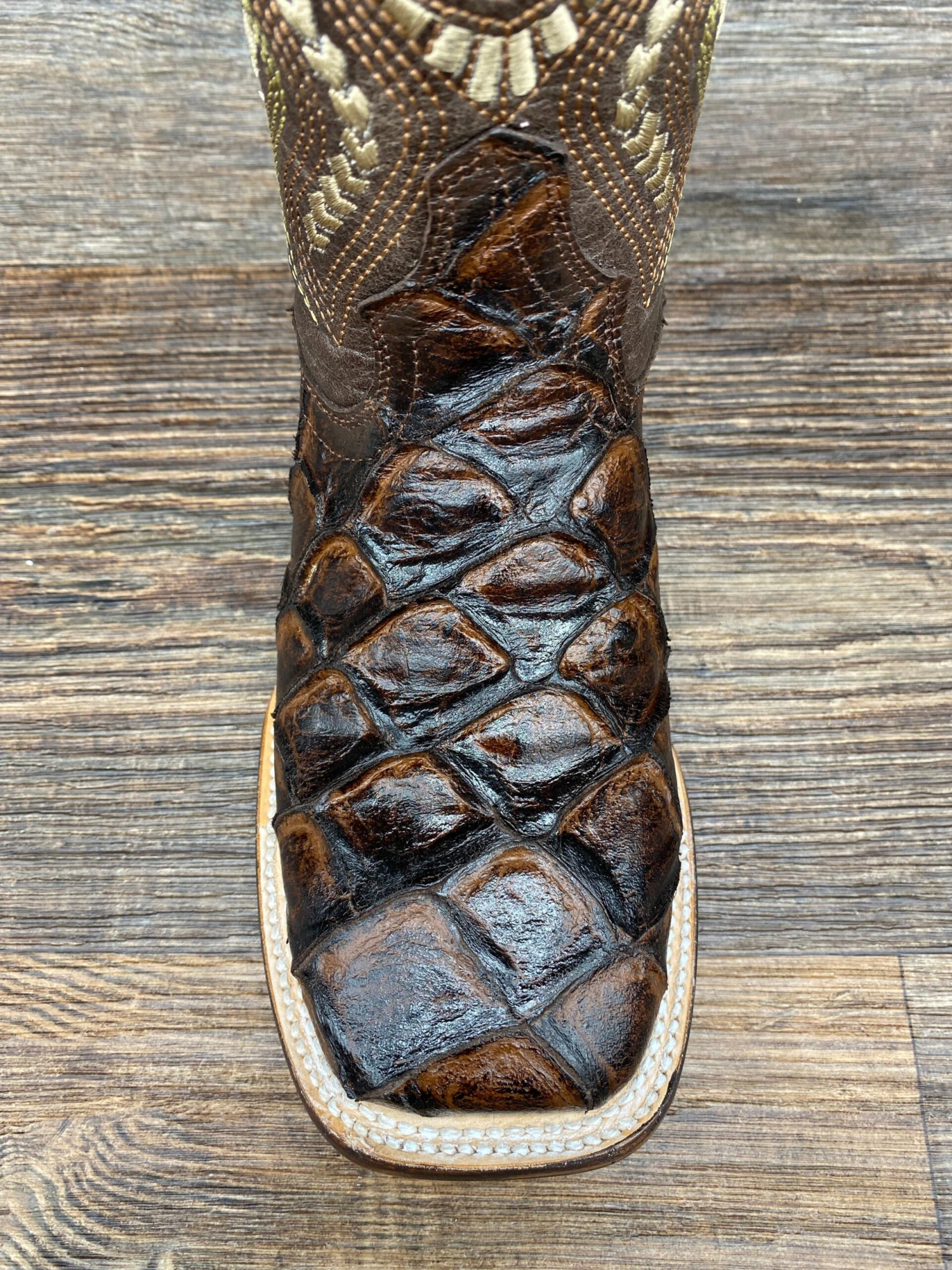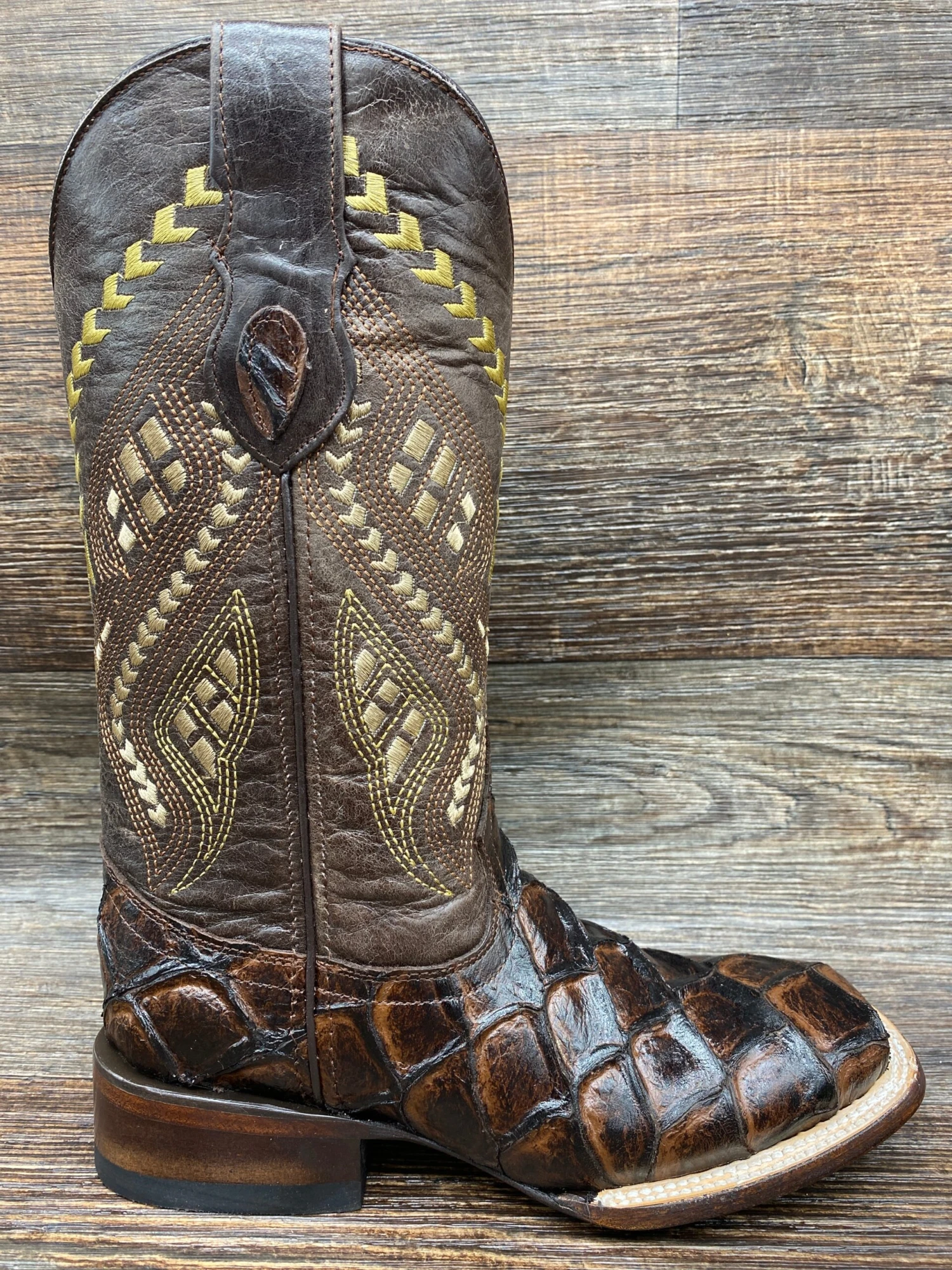 A rugged appearance that keeps both style and comfort in mind. From the bold stitch on the upper to the distinctive print pirarucu vamp, this boot captures the spirit of the west.