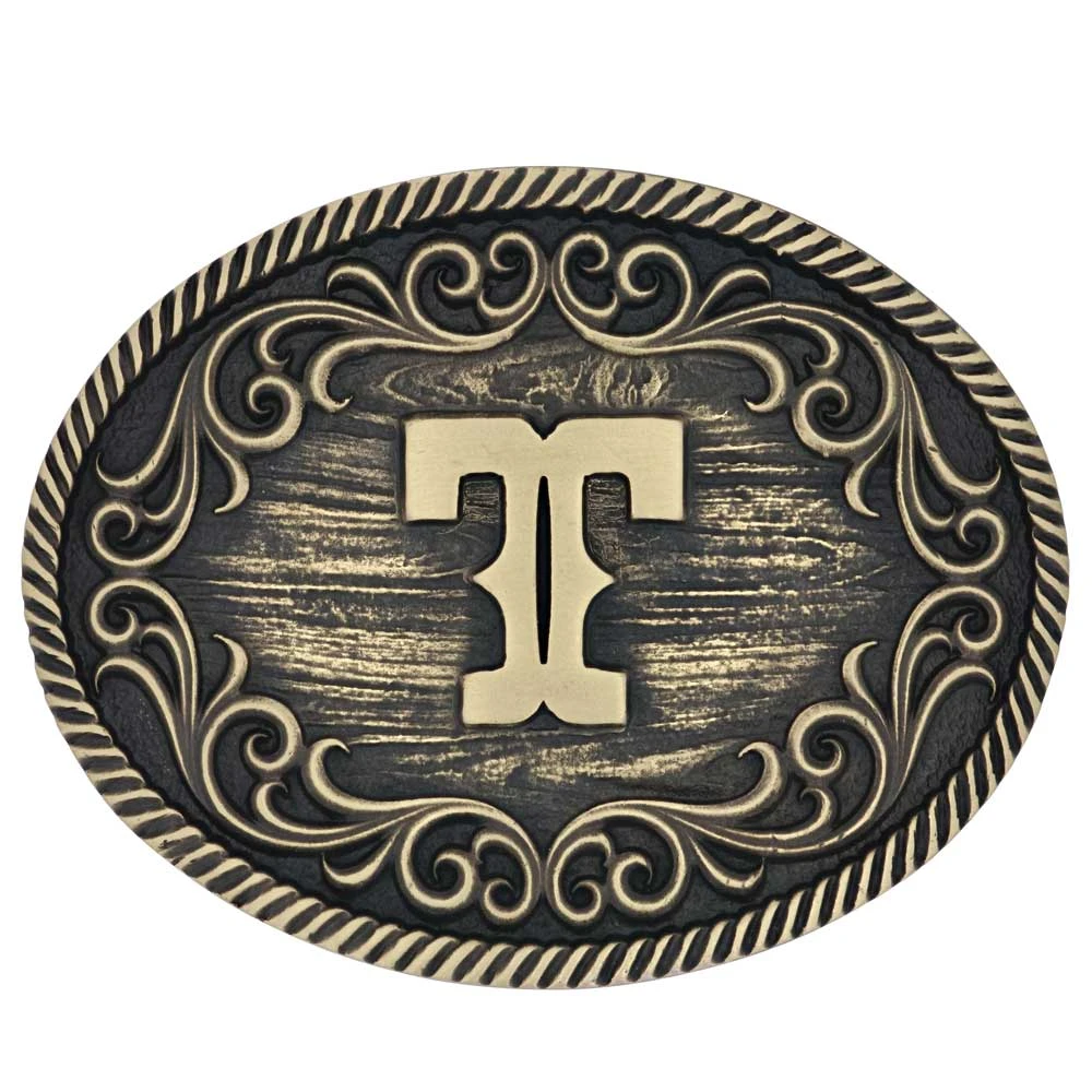 Does anything scream more country than a filigree buckle with your initial on it? Or a more thoughtful gift? Our Filigree Initial Attitude Belt Buckle is silver-toned/gold-toned with roped trim and big, bold, classic filigree in the center cradling one of 12 initials; A, B, C, D, G, J, K, L, M, R, S, T. Standard 1.5″ belt swivel.