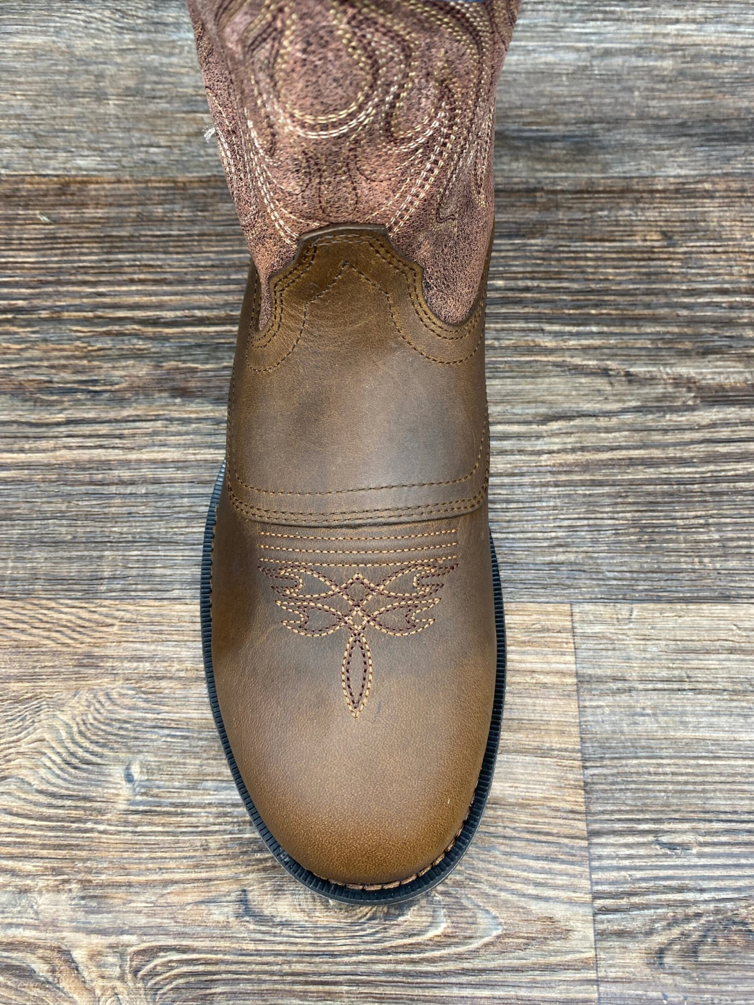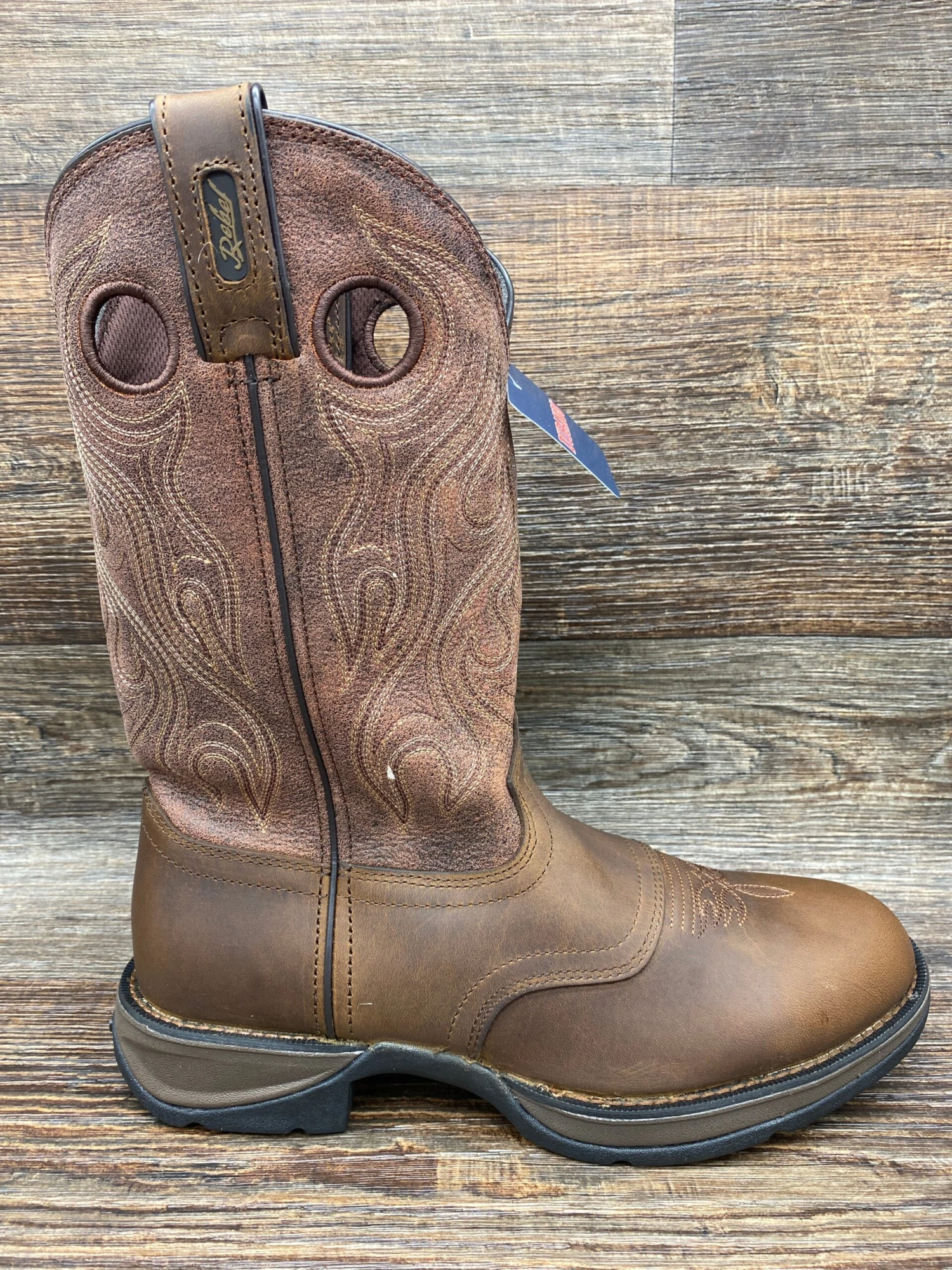 The bark brown color and the quality of the full-grain leather enhances the upper. Since pull-on boots aren’t always easy to get on, this Rebel™ by Durango® Western has finger holes to assist you. The use of double row welt stitching gives staying power to these 12″ Saddle boots.