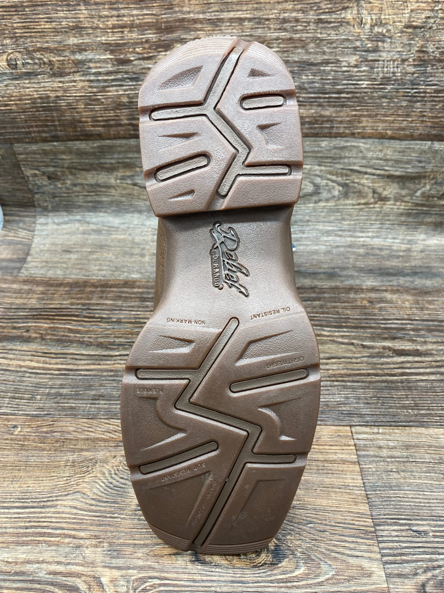 This style also features a fiberglass shank which provides lightweight stability and a rolled shank area. The molded EVA midsole is lightweight and flexible, and the outsole is slip and oil-resistant, dual-density and abrasion resistant rubber. This style also features a double row sole stitch, 1 ½” rocker heel and square toe.