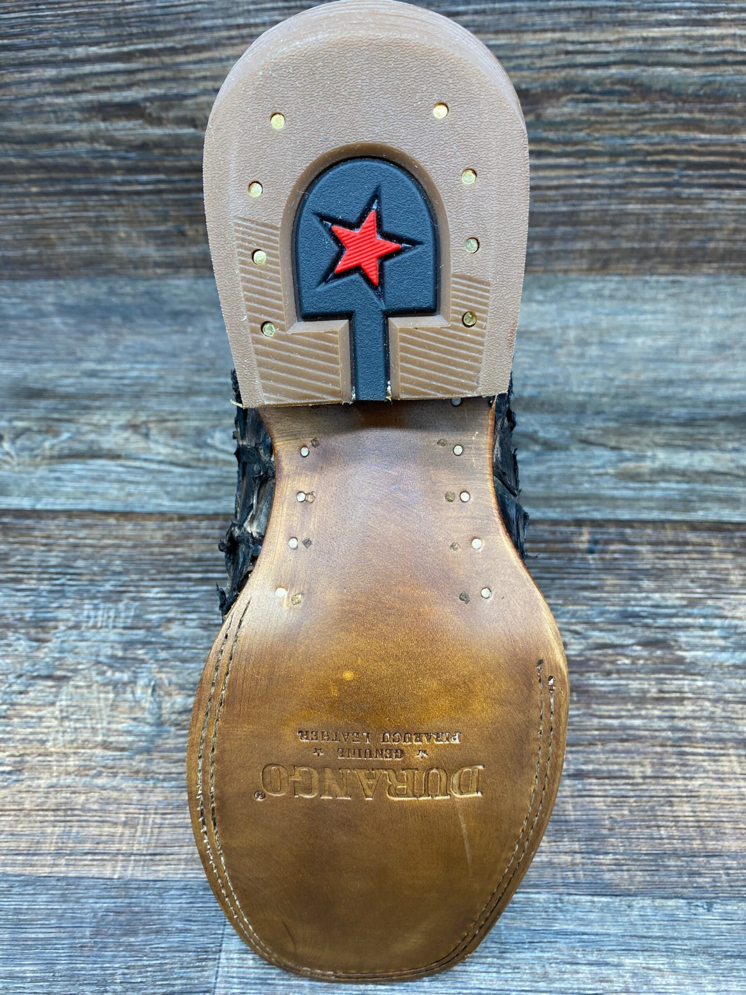 This boot has a premium Pirarucu leather foot with full-grain leather upper and Pirarucu underlay on the pull tabs. This style is leather lined and features the Durango® X-Treme Comfort Footbed™ with memory foam for all day comfort and support. It also has a cushion flex insole with a rigid rear foot stabilizer, nylon shank, rolled shank area and hand pegged and nailed genuine leather outsole.