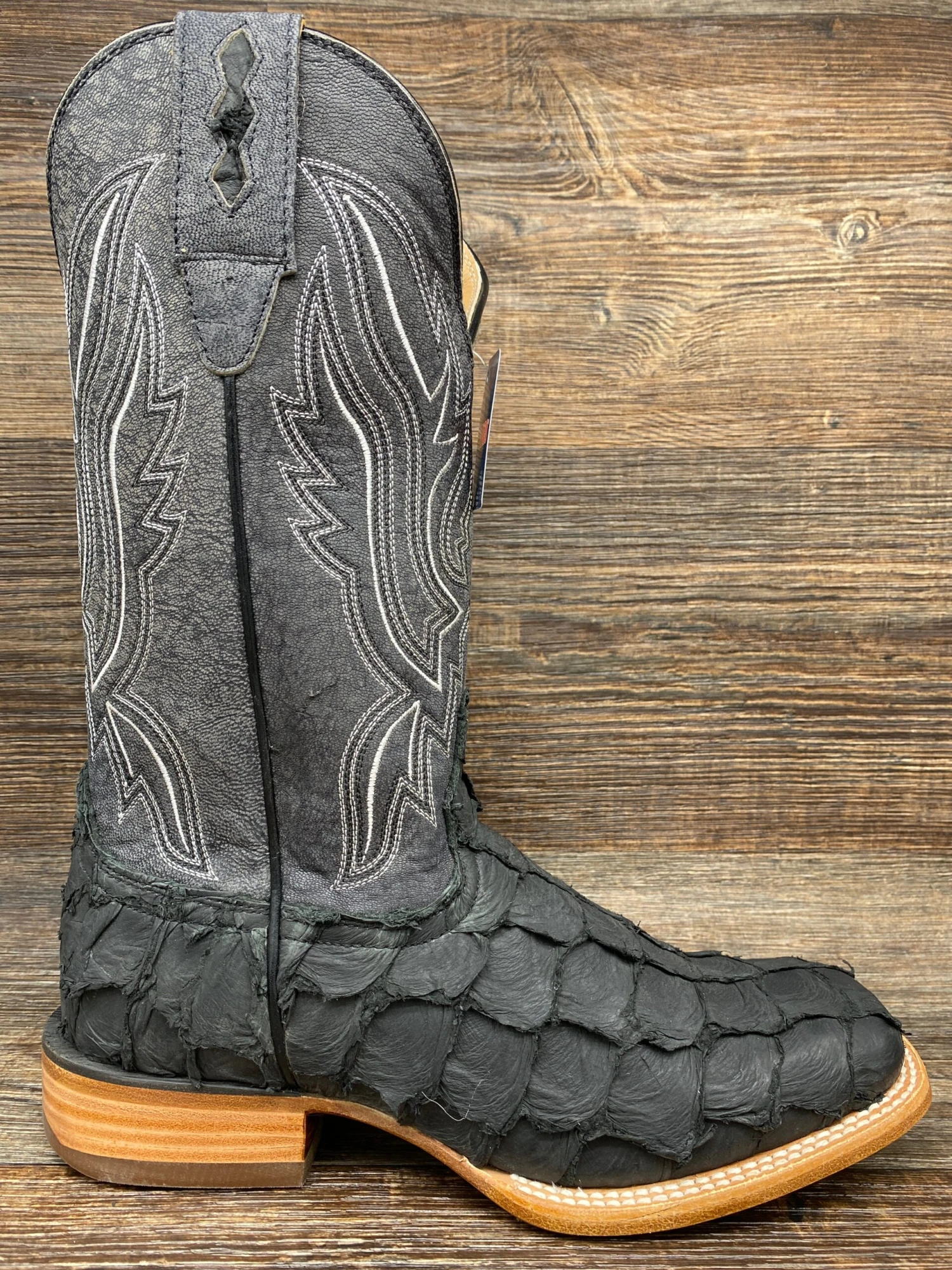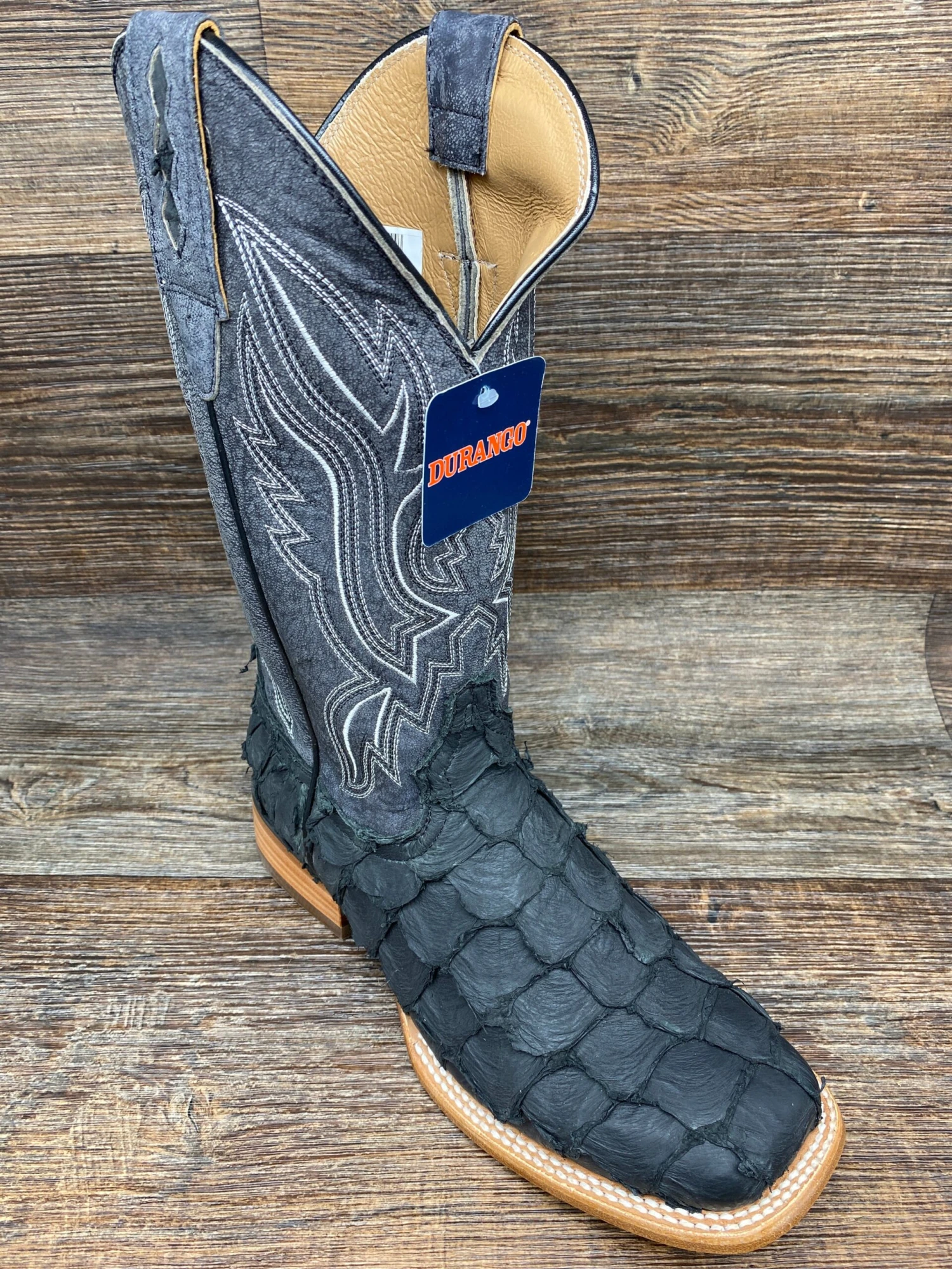 This is the men’s 12″ Western Matte Black Pirarucu Durango® Premium Exoticsâ„¢ style.
