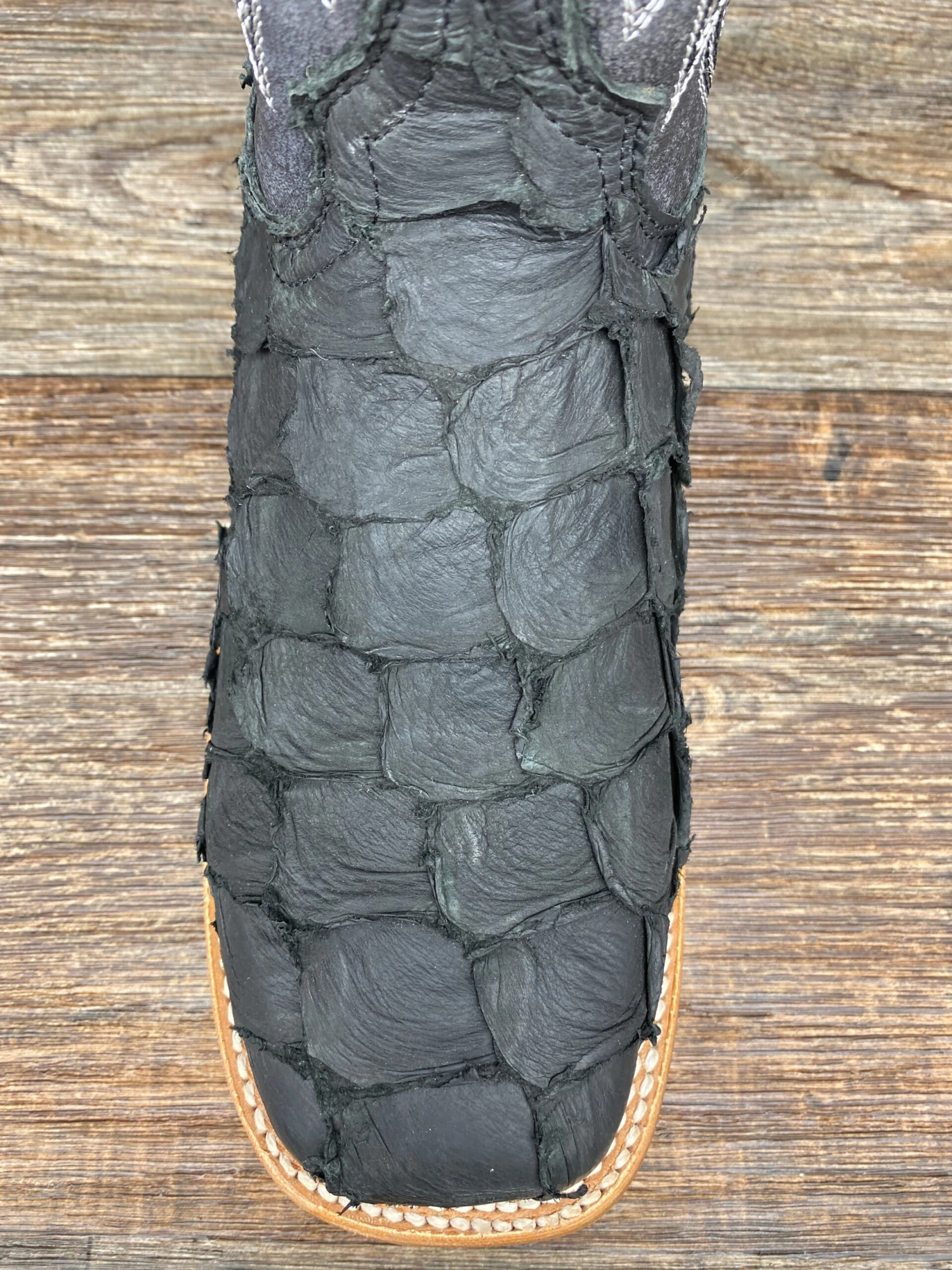 - Premium Pirarucu foot with full-grain leather upper