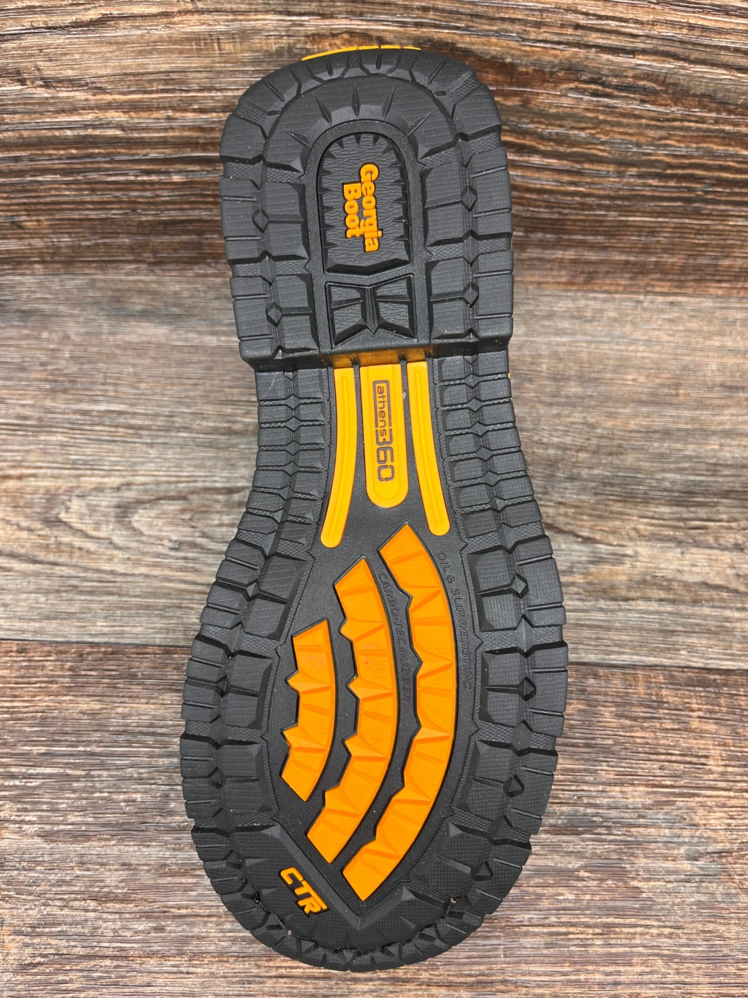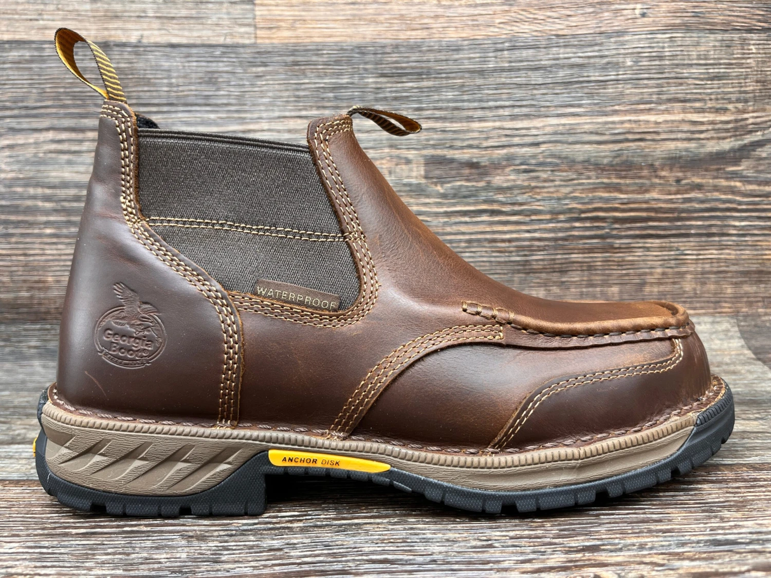 The interior on this steel toe slip on work boot is lined with a soft performance mesh material and is equipped with the Georgia Waterproof System. Our waterproofing is guaranteed to keep water and muck from seeping in when working in wet job conditions. The Comfort Core® Next Gen footbed is a removable memory foam insole featuring individual Comfort Core® pillars that flex to absorb shock and cushion with each step.