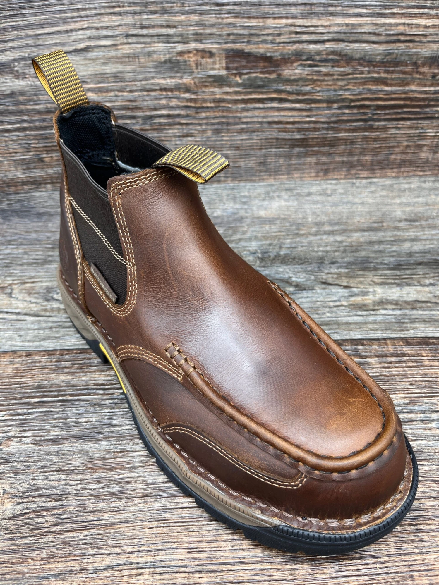 The foundation of this steel toe slip on work boot includes a fiberglass shank, a cushioning EVA midsole, a TPU Anchor Disk® and our proprietary Carbo-Tec Rubber outsole with a defined heel. It meets electrical hazard standards as outlined by ASTM F2413.