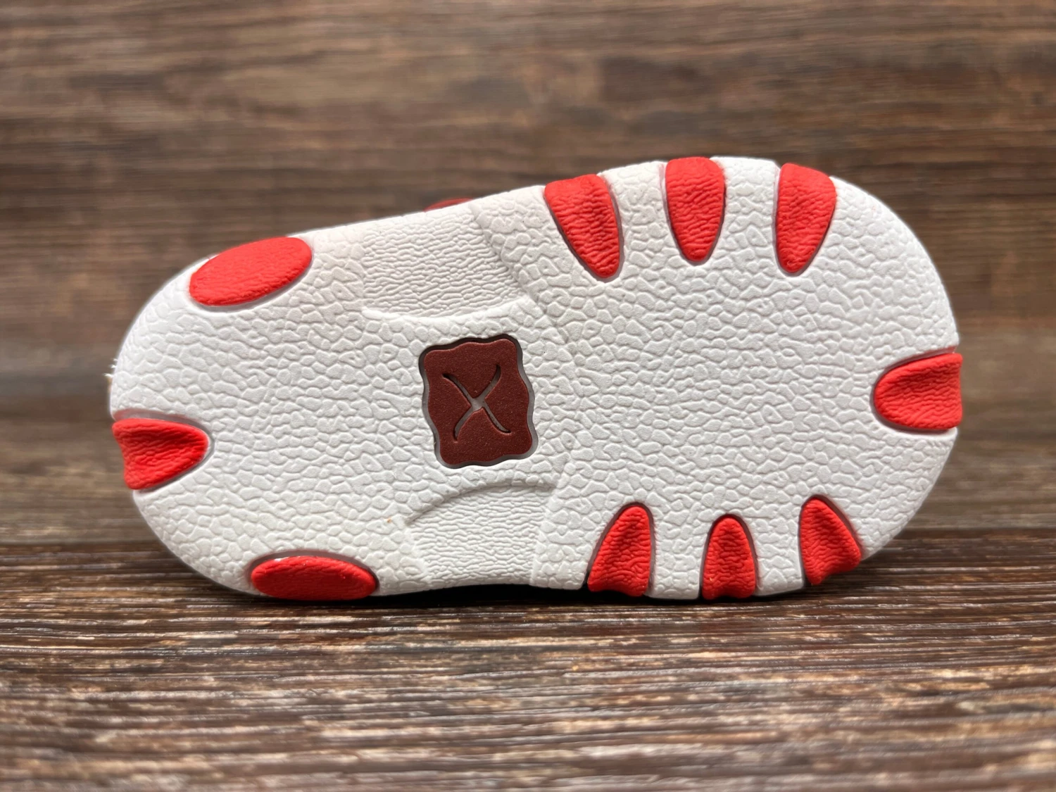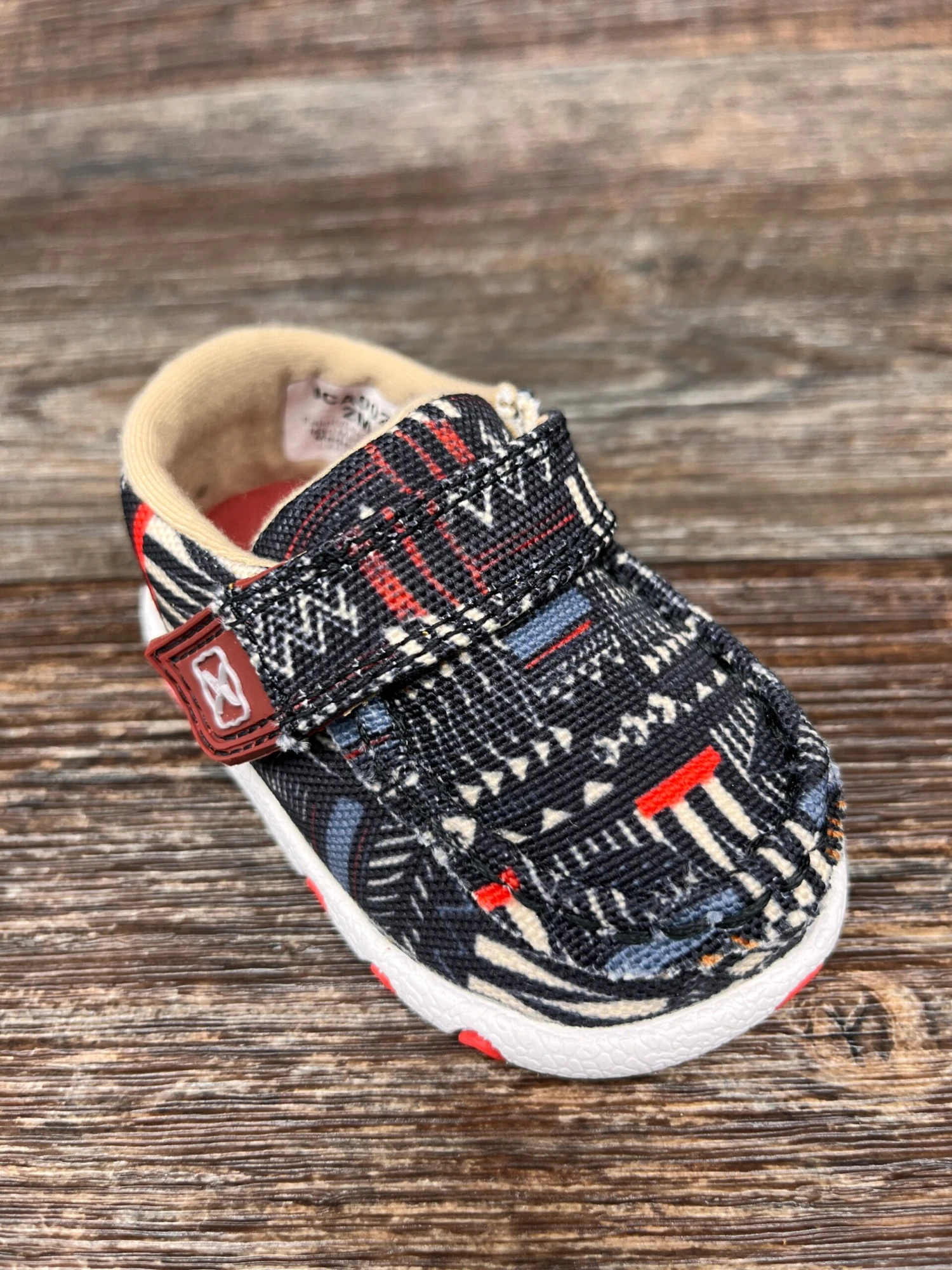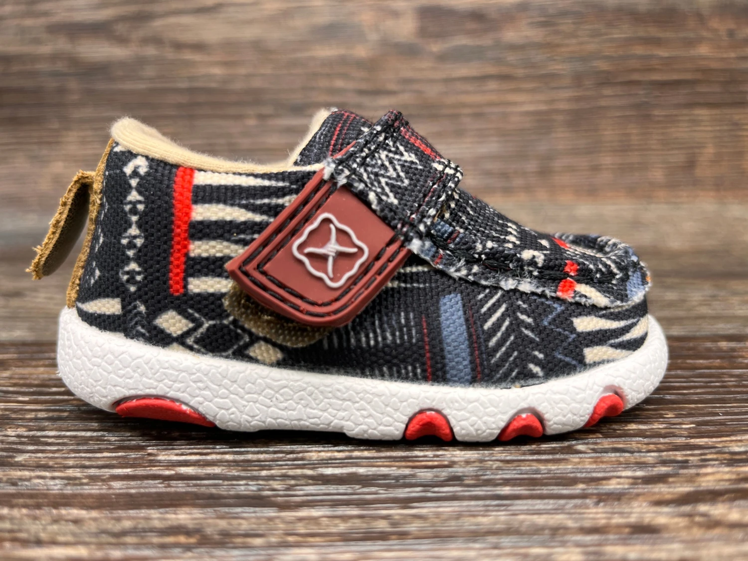 Infant Driving Moc styles to match the whole family! Handcrafted with a fabric upper and the same components you’ll find in other Twisted X® footwear, your little one can now experience the same superior comfort. This style offers the benefit of a hook-and-loop fastener, leather heel tab, lightweight Blend85â„¢ upcycled footbed, and a durable molded rubber cupsole ensuring improved stability and support as they grow.