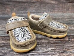Infant driving mocs that are handcrafted in full-grain leather and an environmentally friendly ecoTWX Tweed, with the same components you’ll find in any other Twisted X driving moc collection. This moc features an EVA footbed and a durable molded rubber outsole which provides improved stability and support as they grow.