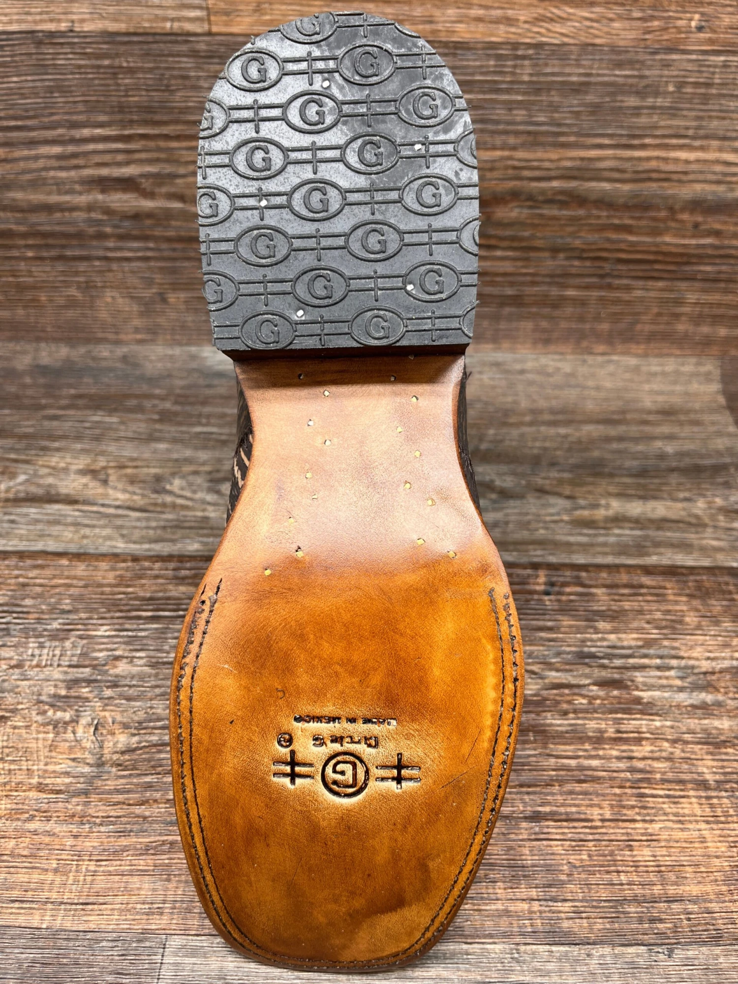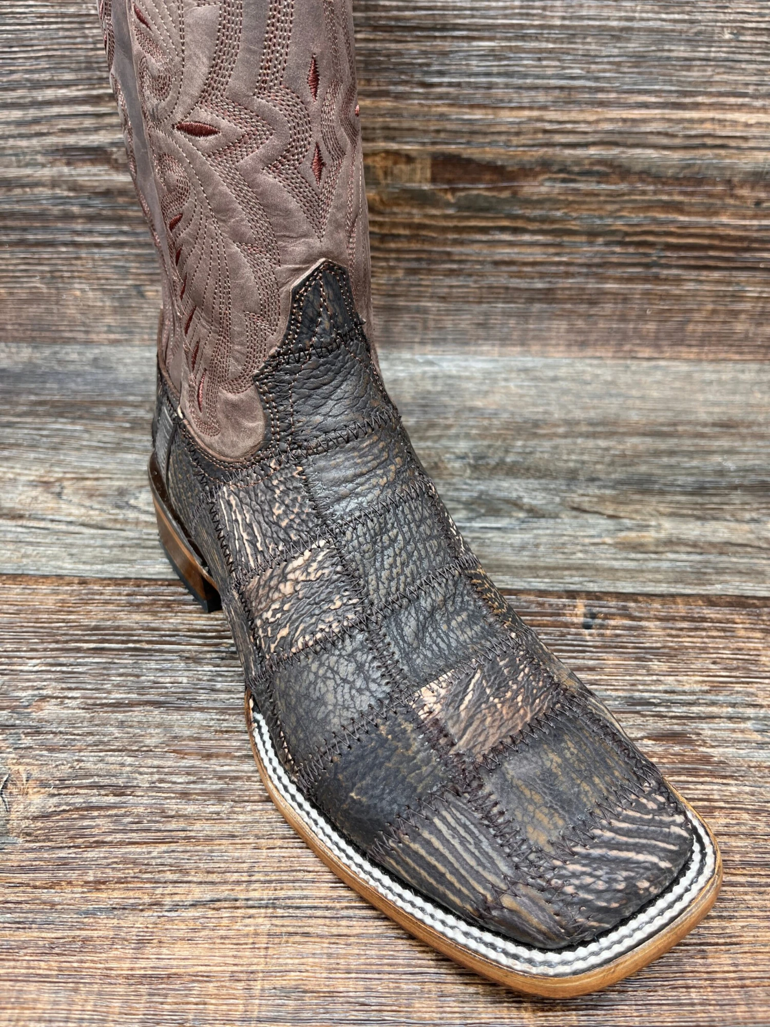 This 12-inch boot features a genuine Patchwork Shark vamp, a double-stitched Goodyear Welt for resole-ability, a leather dress sole, a block roper heel, a wide square toe, and a fully leather-lined 4-row-stitched shaft with accent stitching, all expertly crafted by the same artisans who produce Corral branded footwear.