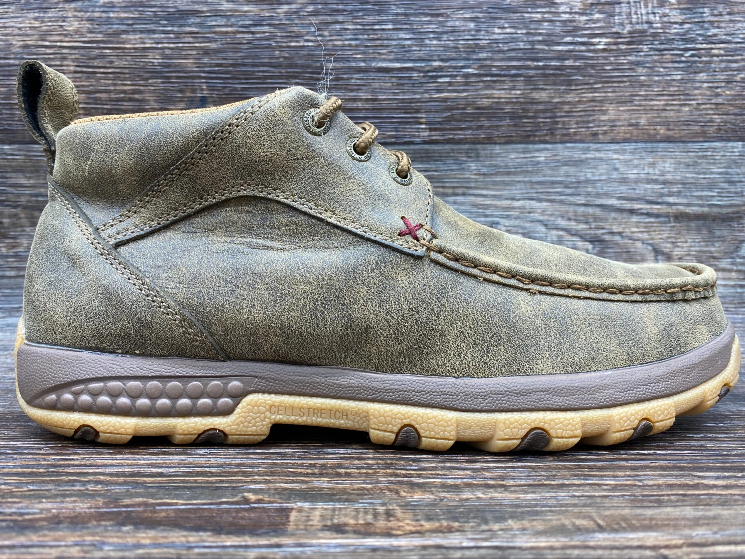 The men’s casual chukka driving moc in full-grain leather features Twisted X® patented CellStretch® comfort technology, ensuring that every step you take is backed by superior comfort. The compression-molded EVA midsole with integrated CellStretch® tech, along with a molded rubber outsole provides the unmatched stability and durability you need to carry you from one adventure to the next.
