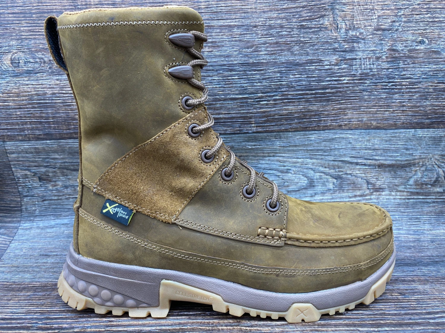 The Men’s Work 8″ Lace-Up Composite Toe Boot with MetGuard™ will allow you to stay on your feet, all day long, without sacrificing comfort. Handcrafted in full-grain leather, the Lace-Up Composite Toe Boot features Twisted X® patented CellStretch® comfort technology €“ ensuring that every step you take is backed by superior comfort. For stability and durability, Twisted X® has combined a compression-molded EVA midsole, integrated CellStretch® comfort technology, and a nylon/glass fiber shank. The oil/slip-resistant molded rubber outsole provides durability and improved traction for whatever your day may bring. Twisted X® Work footwear provides all the comfort, stability, and durability that you need to outperform any demanding work environment.