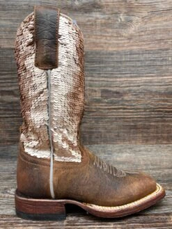 Mk9153 Kid’s Bison With Reversible Sequin Top Square Toe Western Boot By Macie Bean
