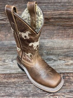 3882c Kid’s Rancher Distressed Square Toe Western Boot By Smoky Mountain