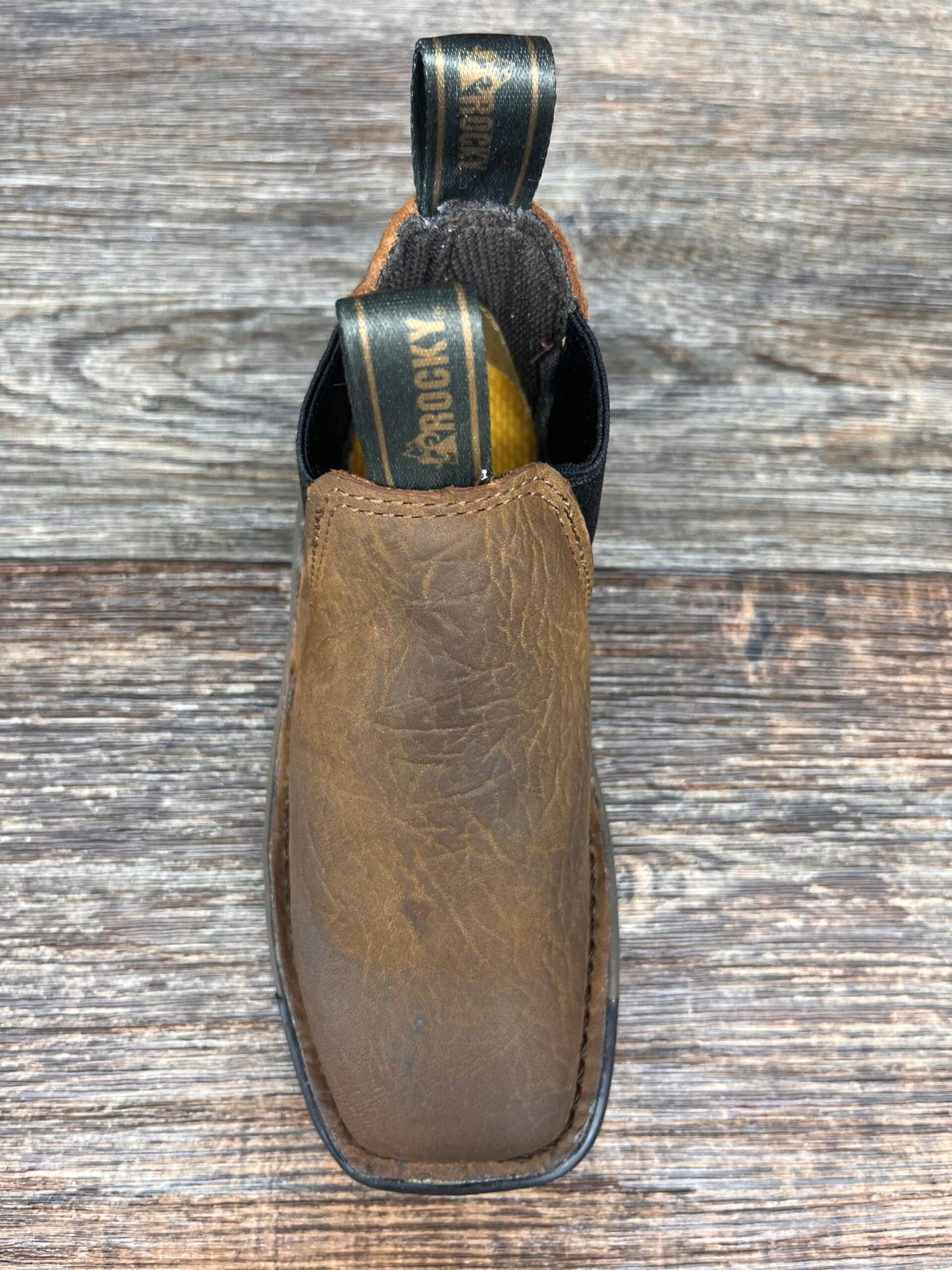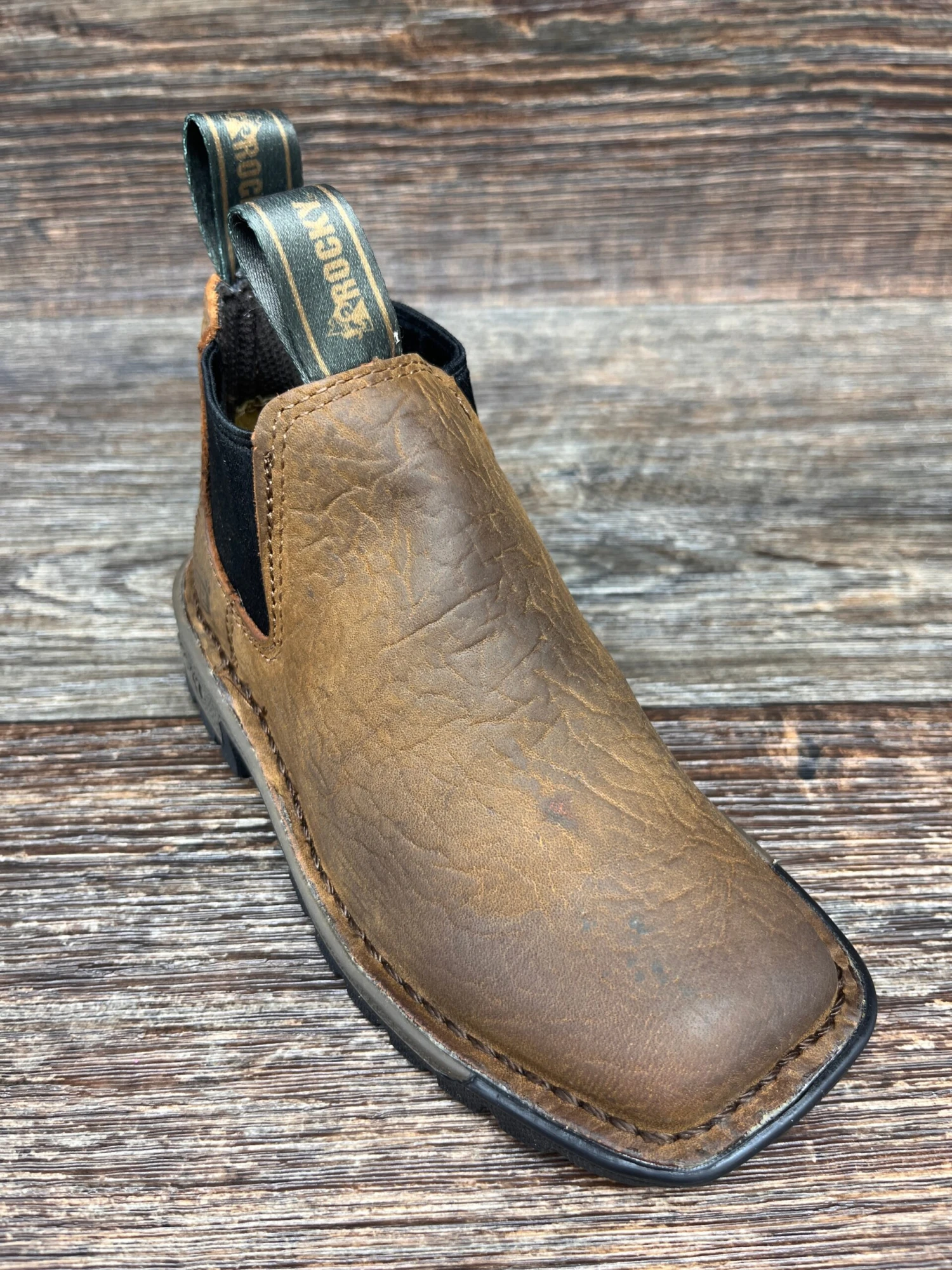 The Rocky Legacy 32 kids’ collection takes elements from classic western styles and adds the latest in comfort and technology built for kids. This 4-inch dark brown full grain leather pull-on is designed for all day comfort and stability. Built to keep up with your big kid’s adventures, this square toe boot features a stitch out construction, fiberglass shank, and an oil- and slip-resisting rubber outsole. Twin expansion gore panels allows for easy on and off and a cushioned footbed will keep their little feet comfortable all day long.