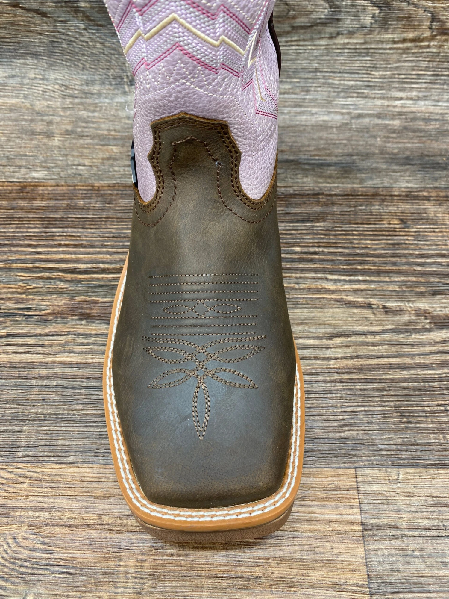 Brown Waterproof Buffalo Leather with Purple Western Stitched Upper