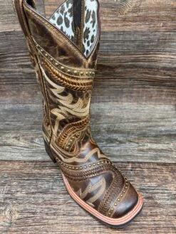 452q Women’s Tan Tooled Leather Square Toe Western Boot By Cowtown
